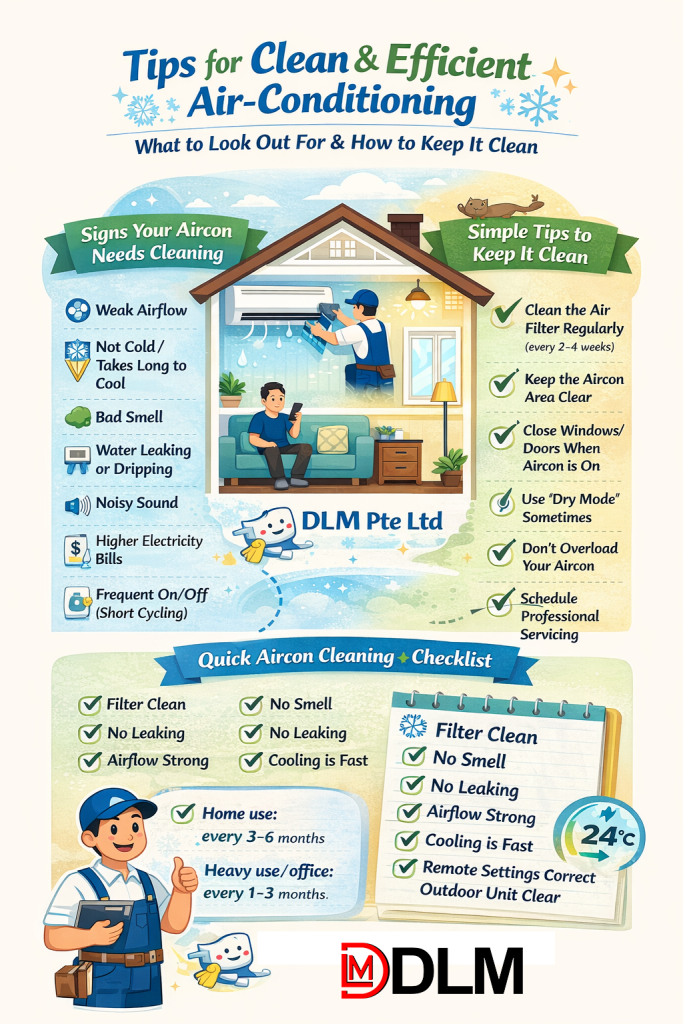 In Singapore, homes — especially HDB flats — can accumulate dust and allergens over time. Air-conditioners work hard every day, and without regular cleaning, you may notice: